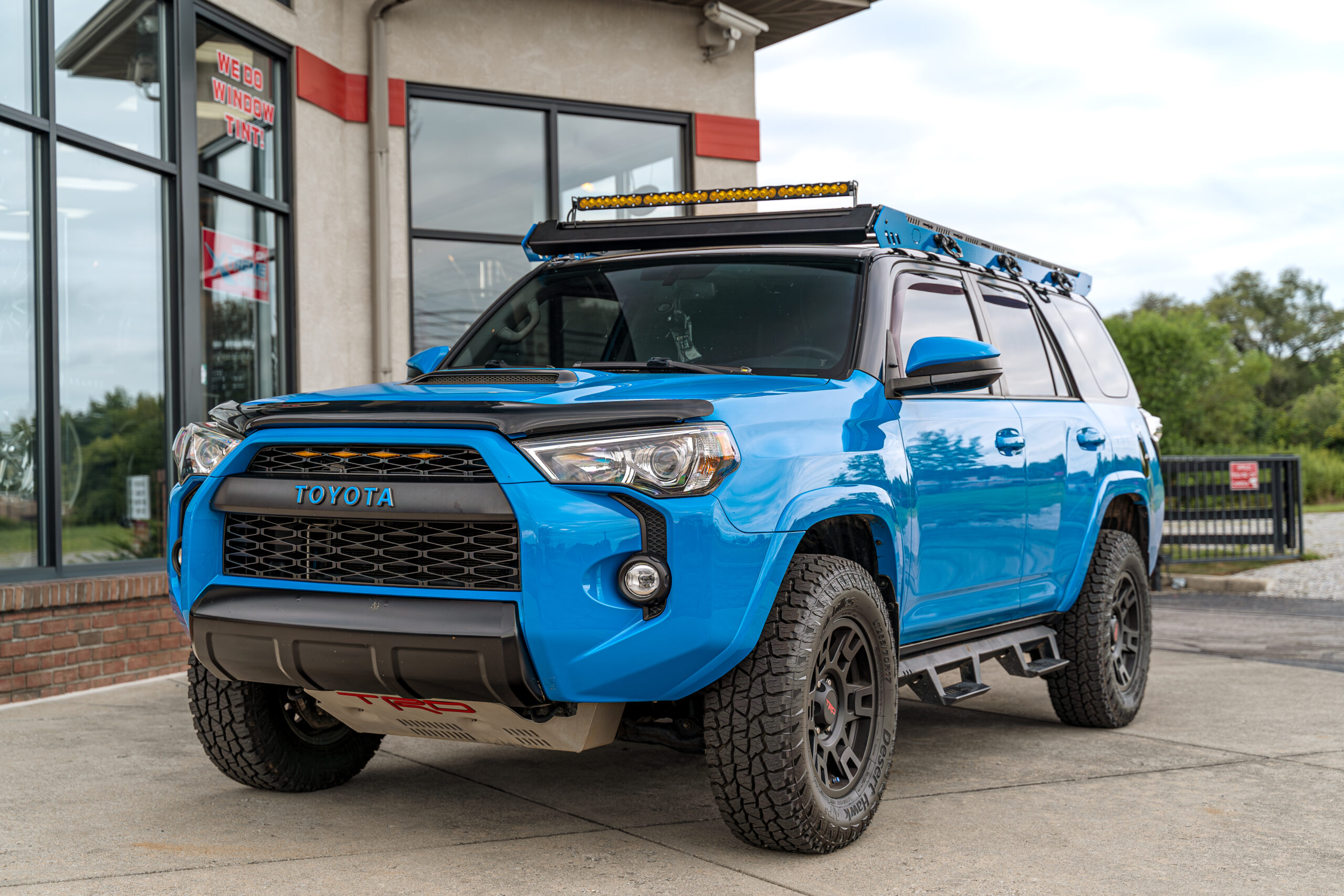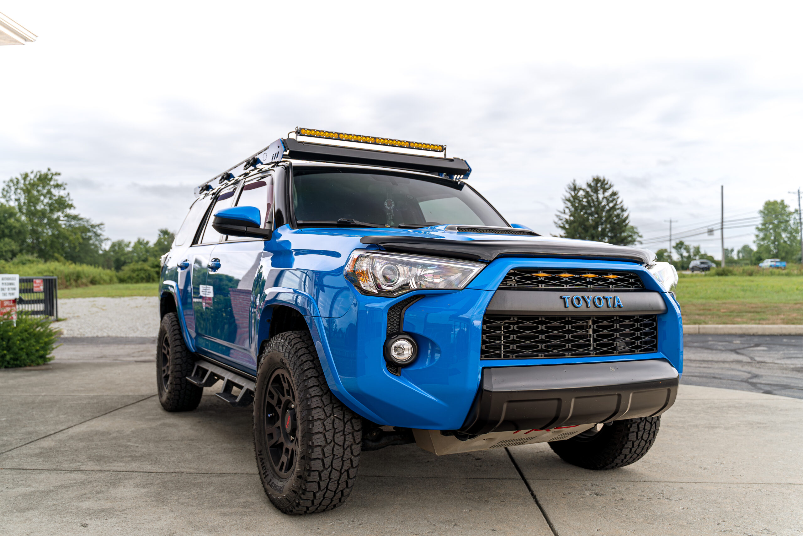 This beautiful blue 4Runner got a color matched upTOPOverland roof rack and a Baja Designs light bar to complete it.
