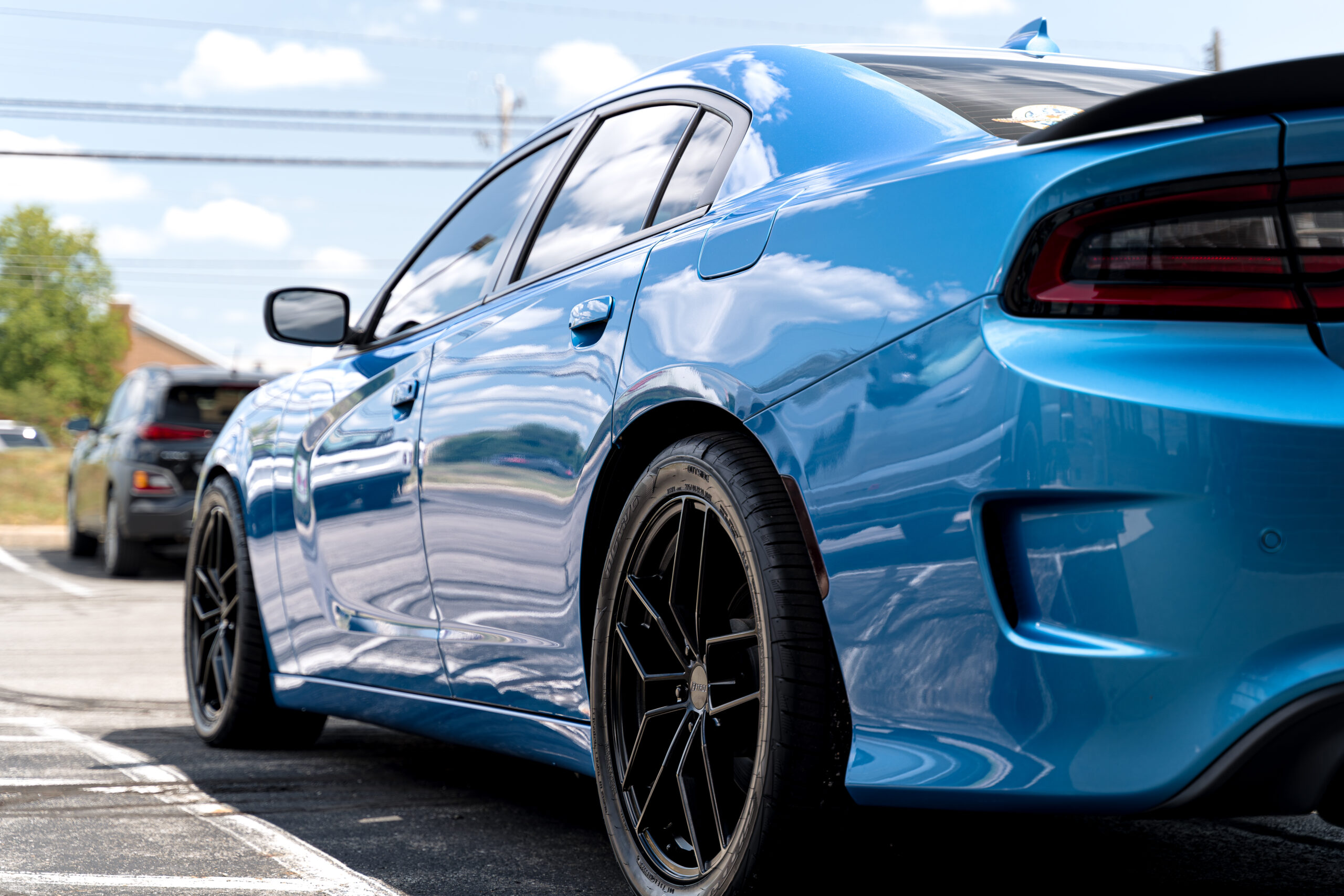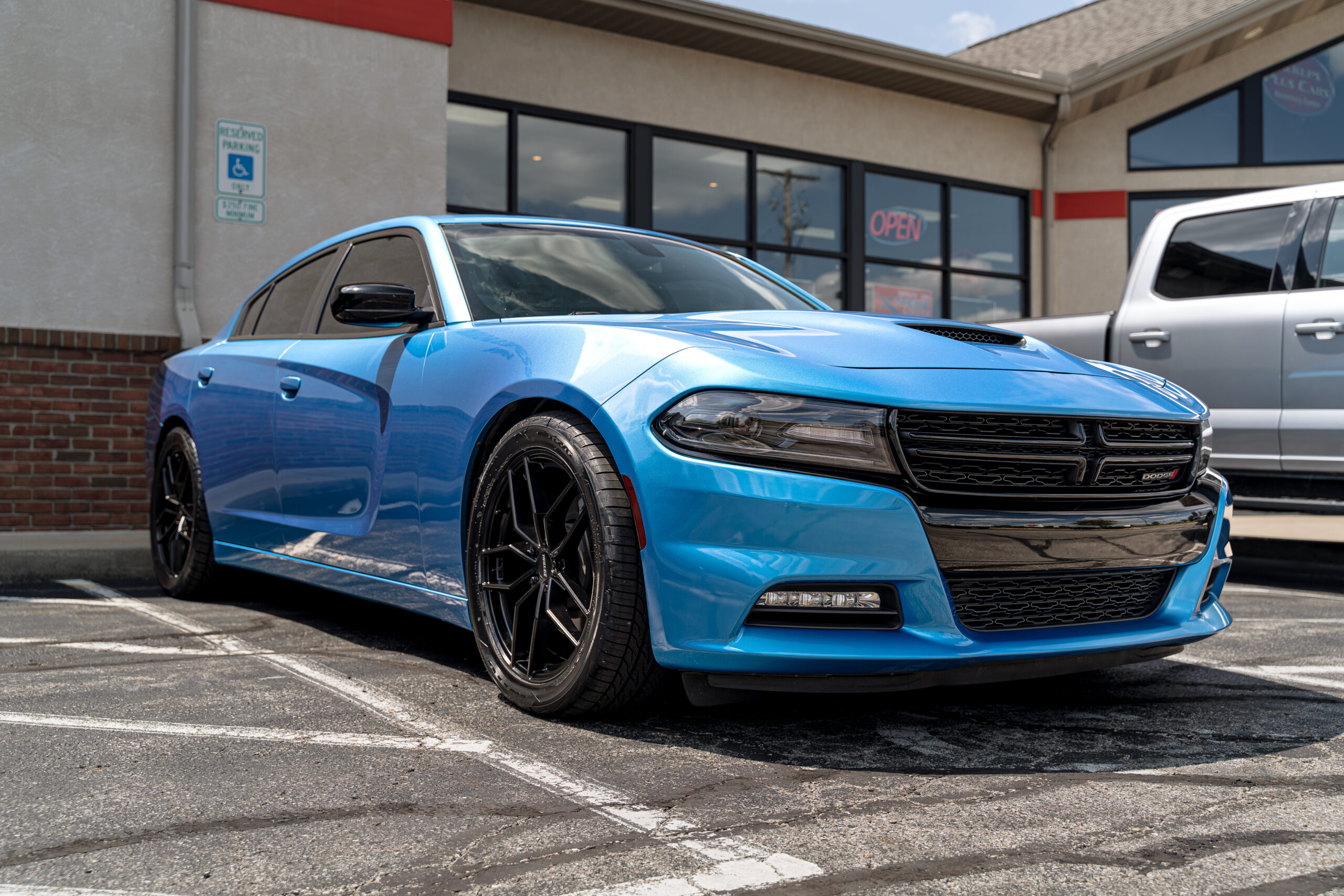 Subtle upgrades are always a good idea no matter the vehicle! This beautiful blue Charger got some new wheels and tires, window tint, and some new exhaust tips!